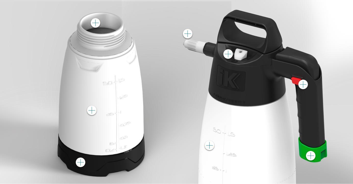 iK FOAM Pro 2 Sprayers specifically manufactured for the generation of dry and long lasting foam. Designed for use with chemical agents with surfactant properties (surface active). iK FOAM creates a groundbreaking and satisfying experience. Thanks to its precision and design you will be able to generate the foam that best suits your needs.