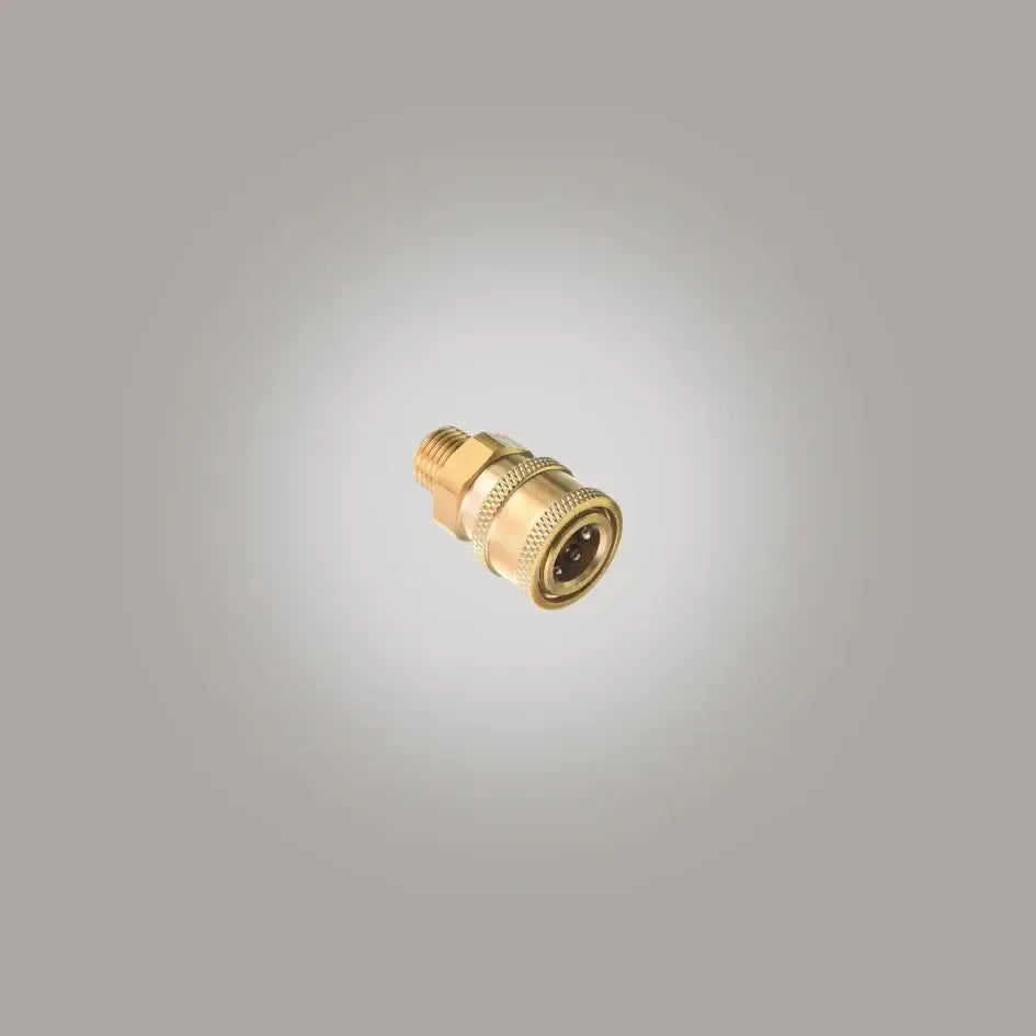 The Washr Quad Brass Quick Connect is built with sturdy brass for high-pressure use. It comes with ¼-inch (6.35mm) male and female fittings, rated for up to 3000 PSI, ensuring a reliable, leak-proof connection for hoses and accessories.